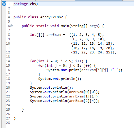 {{1, 2, 3, 4, 5}, //[0]번째 행, [0~4]번째 열